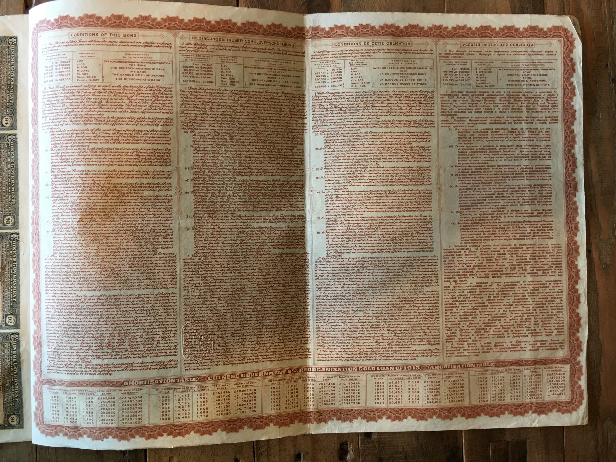 Coupon payments continued through the 1910s but were later suspended as China’s political instability deepened through the Warlord Era and subsequent conflicts.